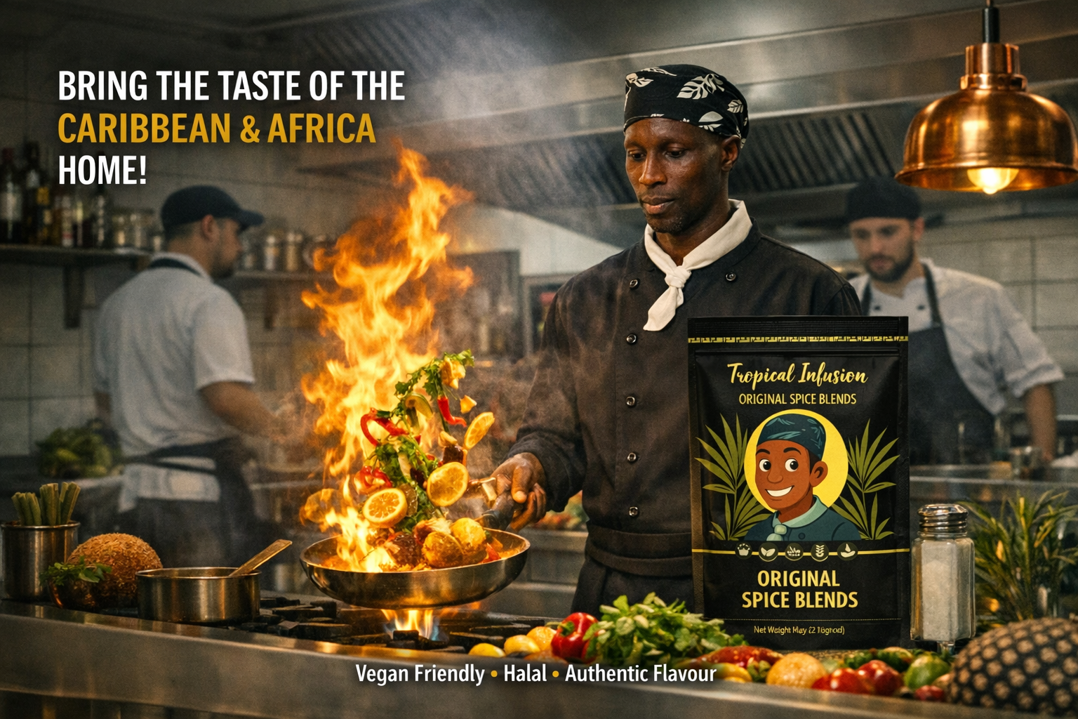 My name is Andrew Dekannwarri, founder of Tropical Infusion Spice Co. I've spent nearly three decades immersed in the culinary world—working as a private chef, food consultant, and specialist in African and West Indian cuisine.